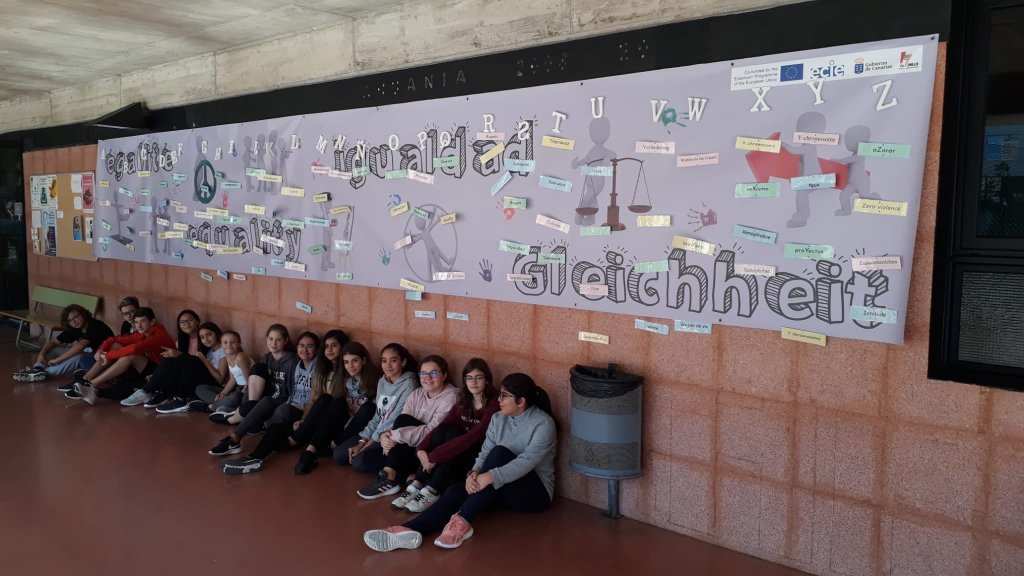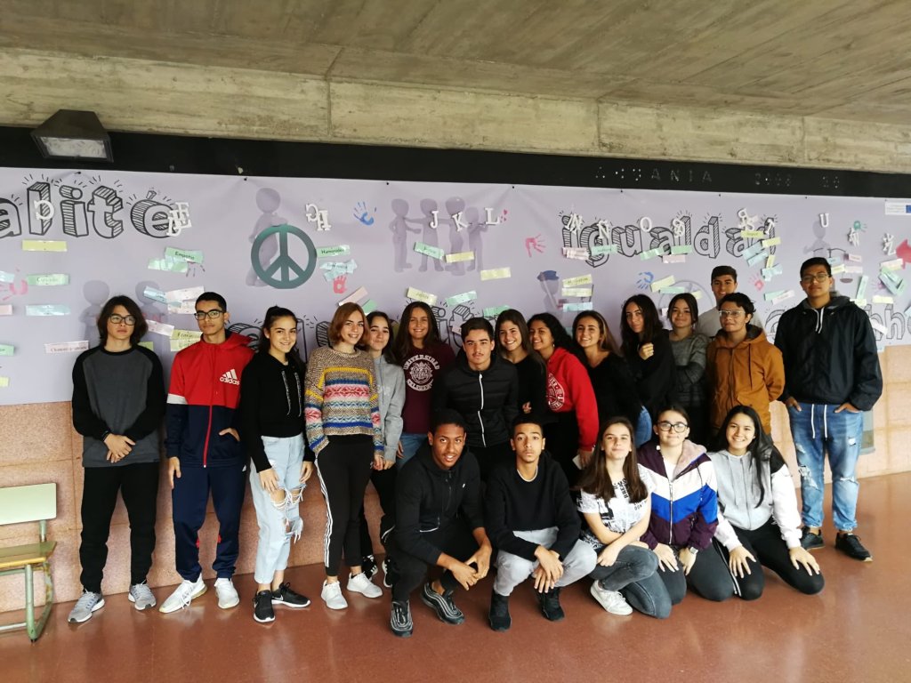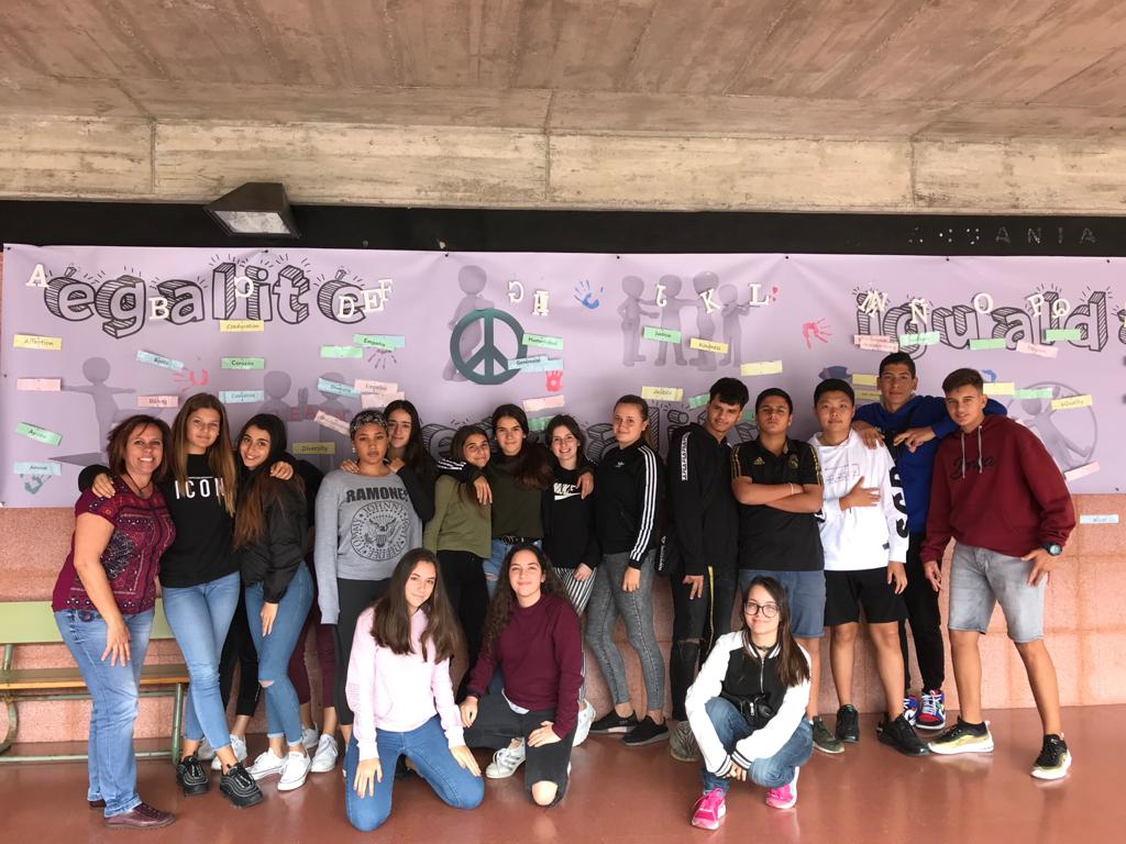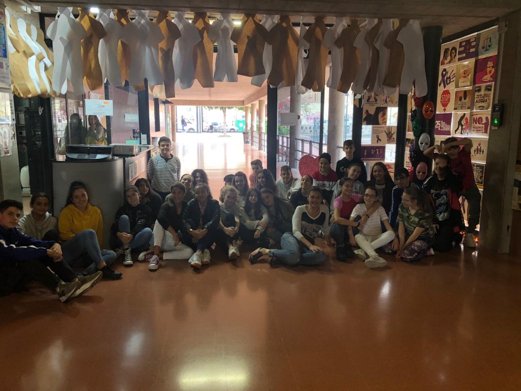Con motivo del día 25 de noviembre, día internacional para la erradicación de la violencia de género, se realizaron varias acciones en nuestro centro. Una de ellas fue la colocación del Alfabeto de la Igualdad y otra la preparación de una instalación artística que representaba el número de mujeres muertas a manos de sus parejas o ex-parejas en lo que va de año. Los distintos grupos, junto con sus tutores y tutoras, fueron pasando por ambas instalaciones para dejar constancia con una fotografía del apoyo de nuestra comunidad escolar a todos los temas relacionados con la igualdad y mostrar respeto por las mujeres muertas a causa de esta lacra.