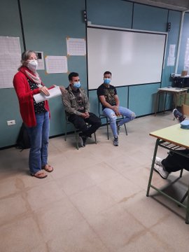 Hoy dos grupos de 1º de Bachillerato tuvieron la oportunidad de charlar con Saíd y Zacarías , dos jóvenes llegados hace 4 años en patera. Nos explicaron su vida en sus países de origen y las razones que les impulsaron a viajar en condiciones infrahumanas. El intercambio nos ha acercado a la realidad tremenda de la emigración: el lugar de nacimiento determina nuestros destinos. Desde nuestro Erasmus+ L4V, fomentamos la solidaridad con los más desfavorecidos.